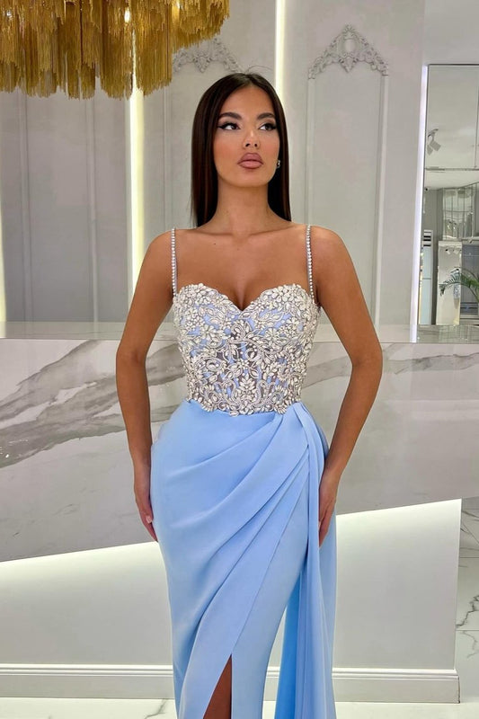 Blaues Ballkleid mit Spaghettiträger Abendkleider Schlicht