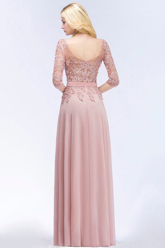 Schöne Brautjungfernkleider Mit Ärmel Brautjungfernkleid Lang Rosa