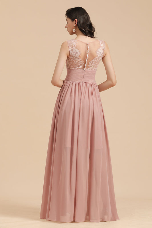 Rosa Brautjungfernkleider lang mit Spitze Günstiges Brautjungfernkleid