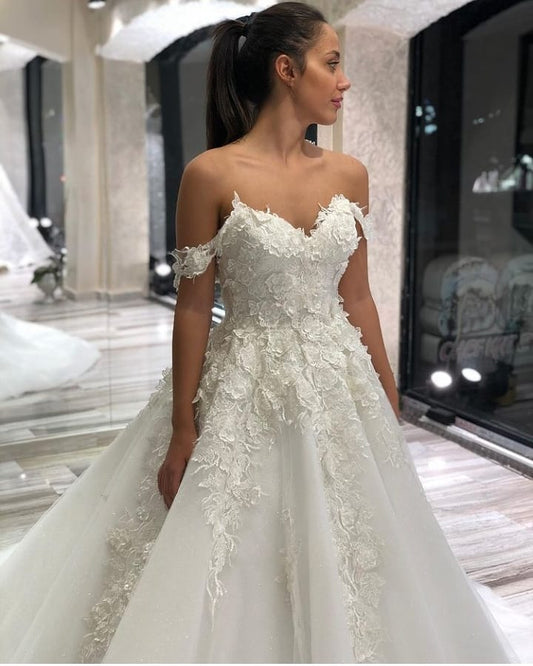 Schulterfreies Brautkleid Prinzessin Hochzeitskleider mit Spitze