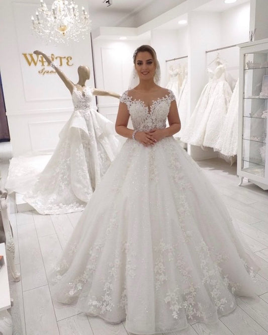 Klassische Brautkleid Prinzessin Hochzeitskleider mit Spitze