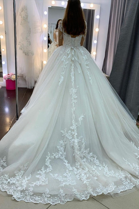 Hochzeitskleid aus Tüll mit langen Ärmeln Ballkleid Spitze