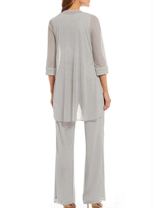 3 Teilige Brautmutterkleider Silber Hosenanzüge Brautmutter Chiffon