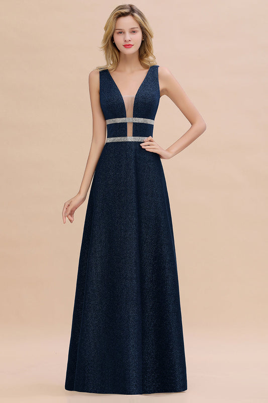 Designer Abendkleid mit V-Ausschnitt Abiballkleid mit Glitzer