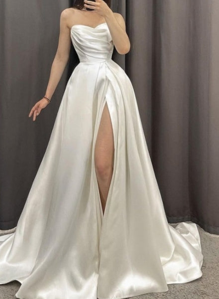 Schlichte Brautkleider mit hohem Schlitz Hochzeitskleider Satin