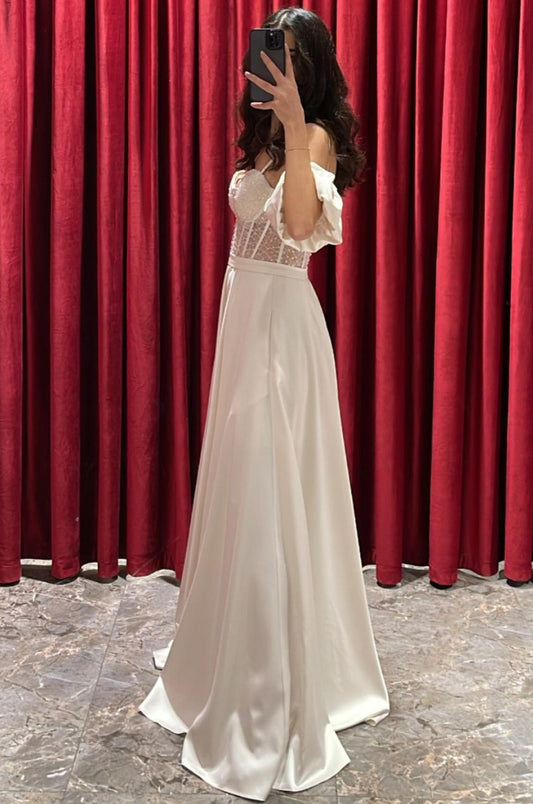 Weißes Abendkleid aus Tüll Abiballkleider mit Schlitz