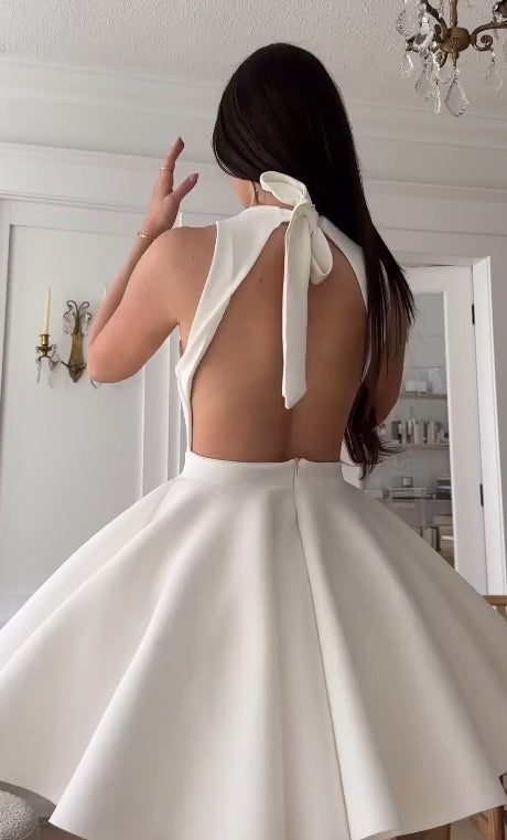 Sexy Ballkleid Kurz Weißes Abendkleid mit Neckholder