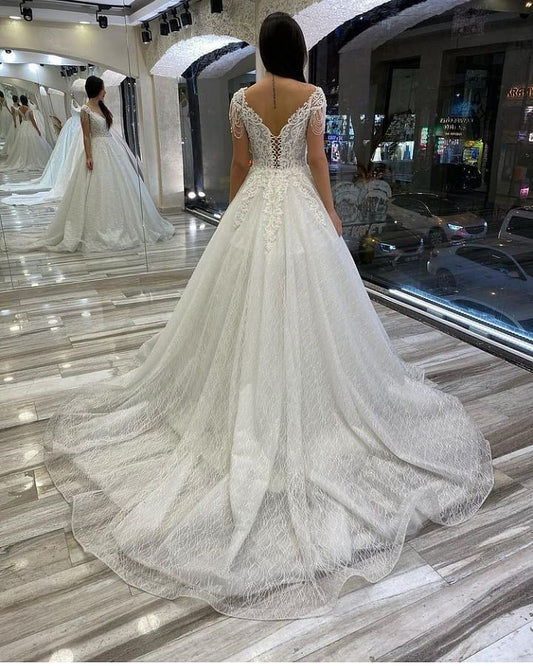Wedding Dress Lace A-Line Wedding Dress with V-Neck