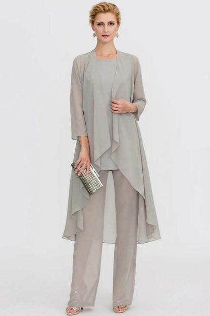 3 Teilige Brautmutterhosen Anzug Silber Brautmutterkleid mit Jacket